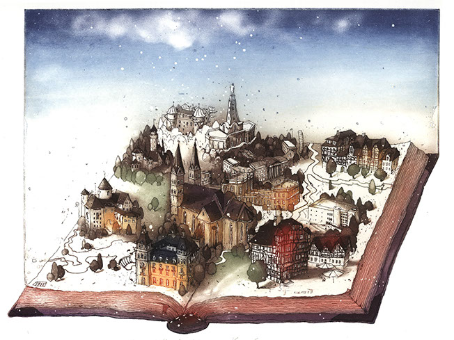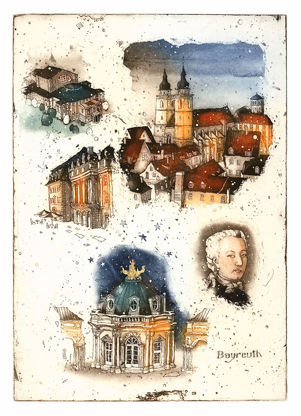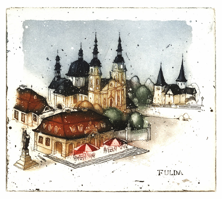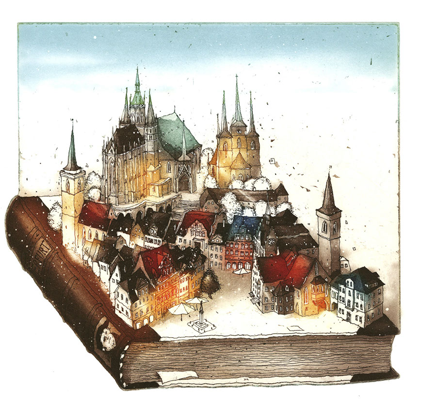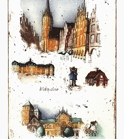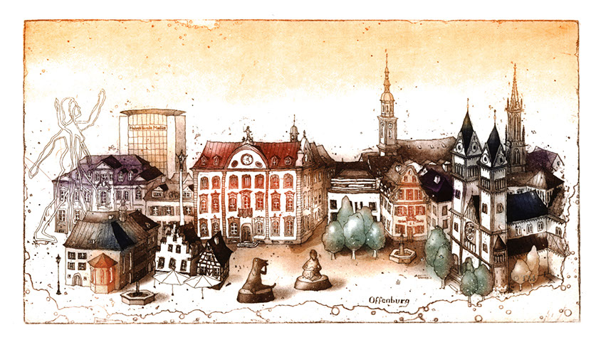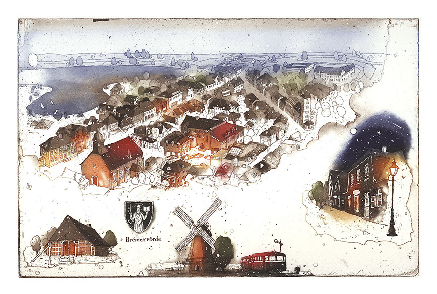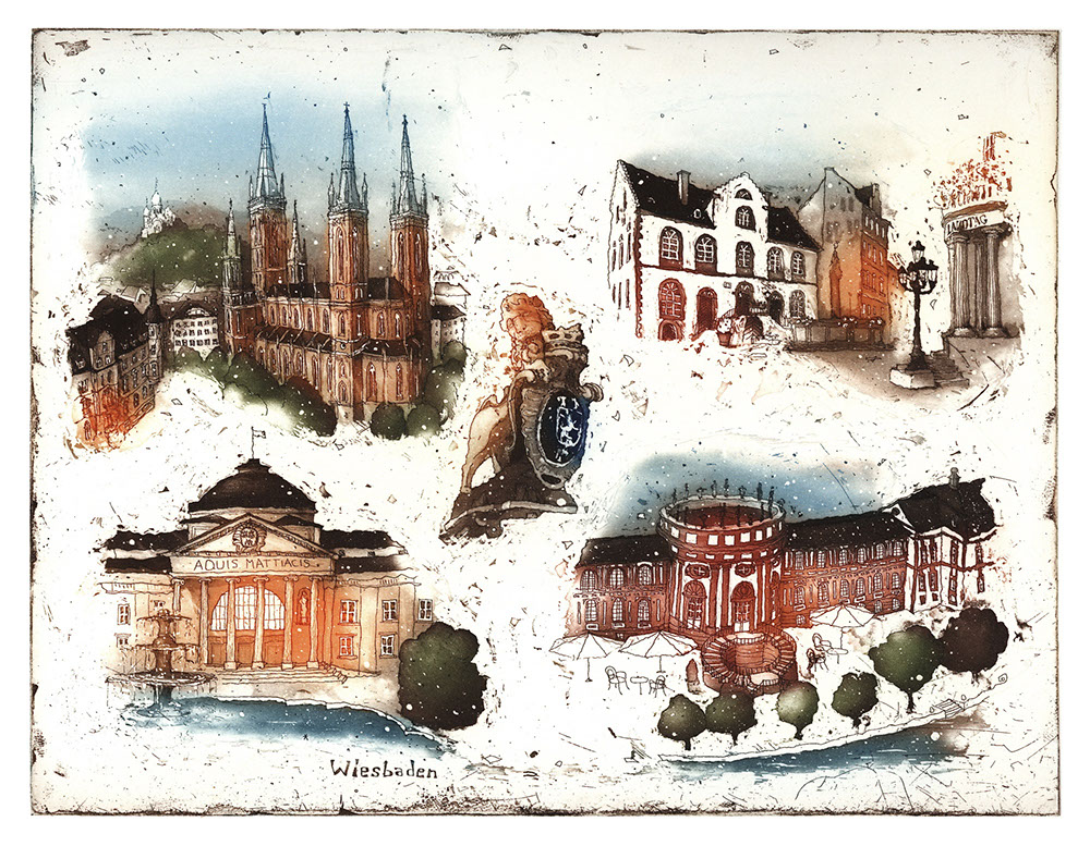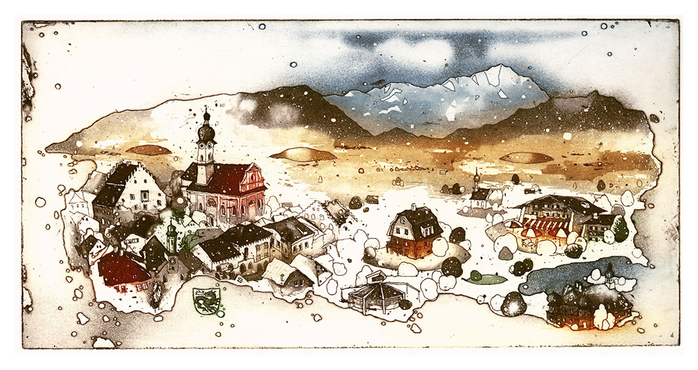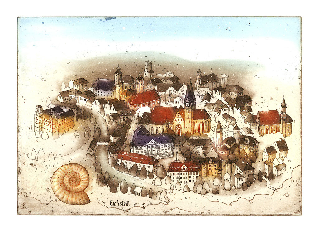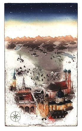 Thomas Möser sieht sich auch in dieser Tradion und entwickelte sie mit seiner besonderen Radiertechnik und seinem Gestaltungsstil zu einer eigenen farbig-modernen Darstellung weiter.