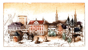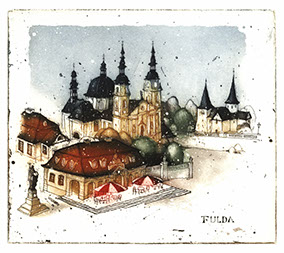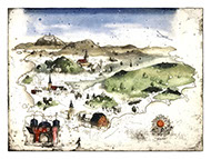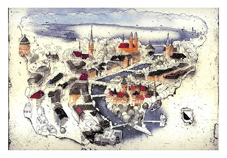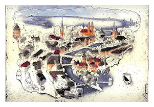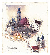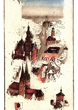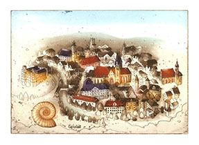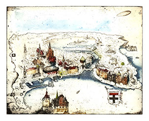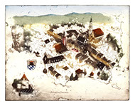 Merian sind Stadtansichten im Charakter der Veduten- und Landschafts-Kupferstecher der Renaissance- und Barockzeit.