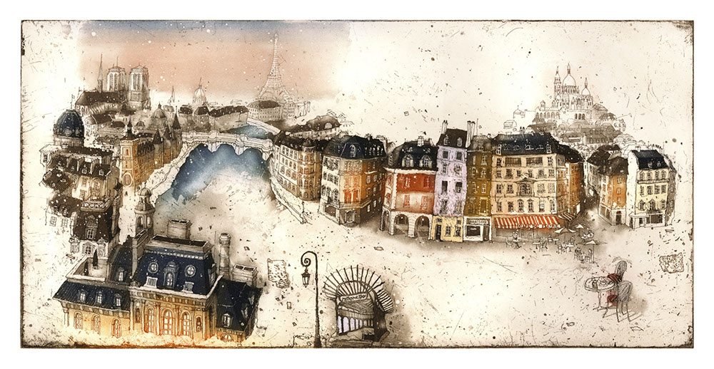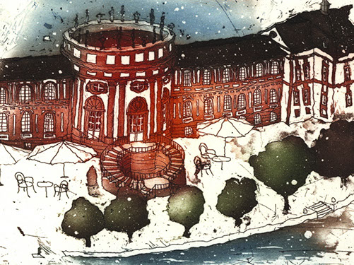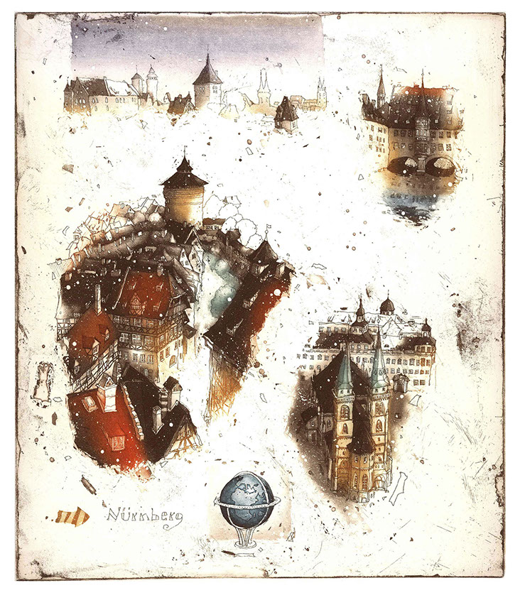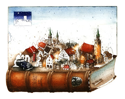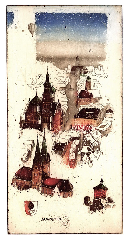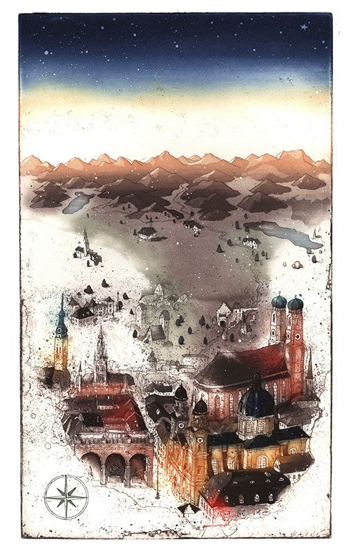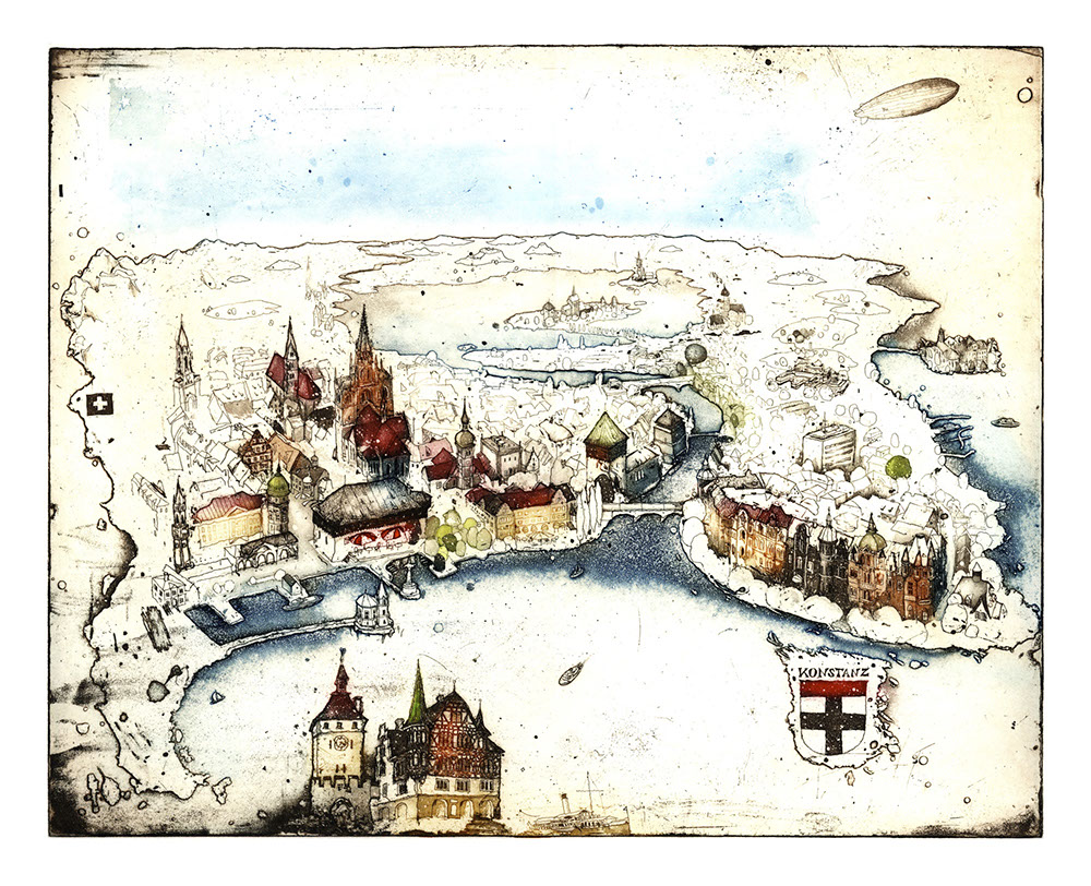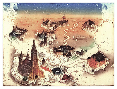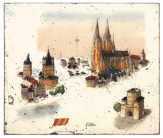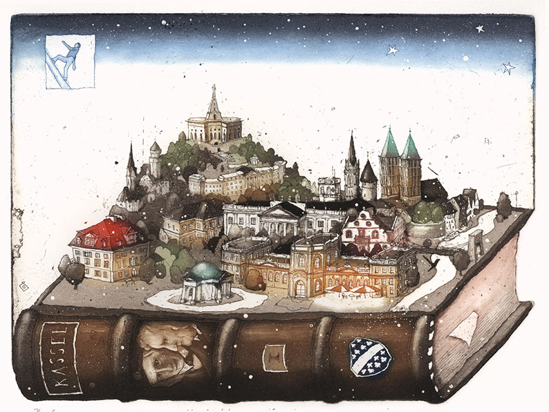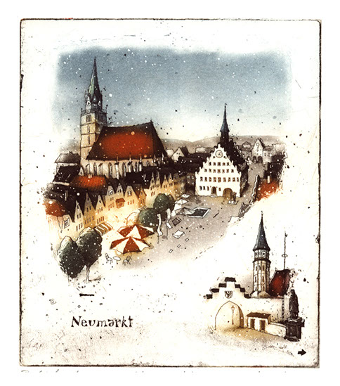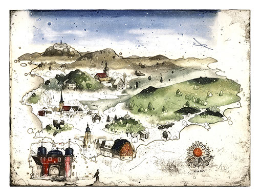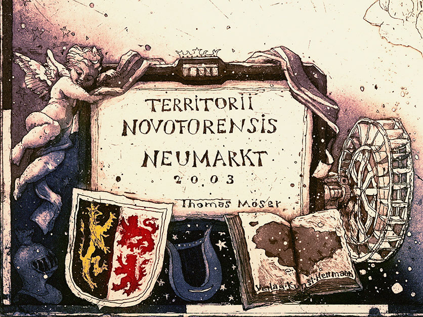 Thomas Möser sieht sich auch in dieser Tradion und entwickelte sie mit seiner besonderen Radiertechnik und seinem Gestaltungsstil zu einer eigenen farbig-modernen Darstellung weiter.